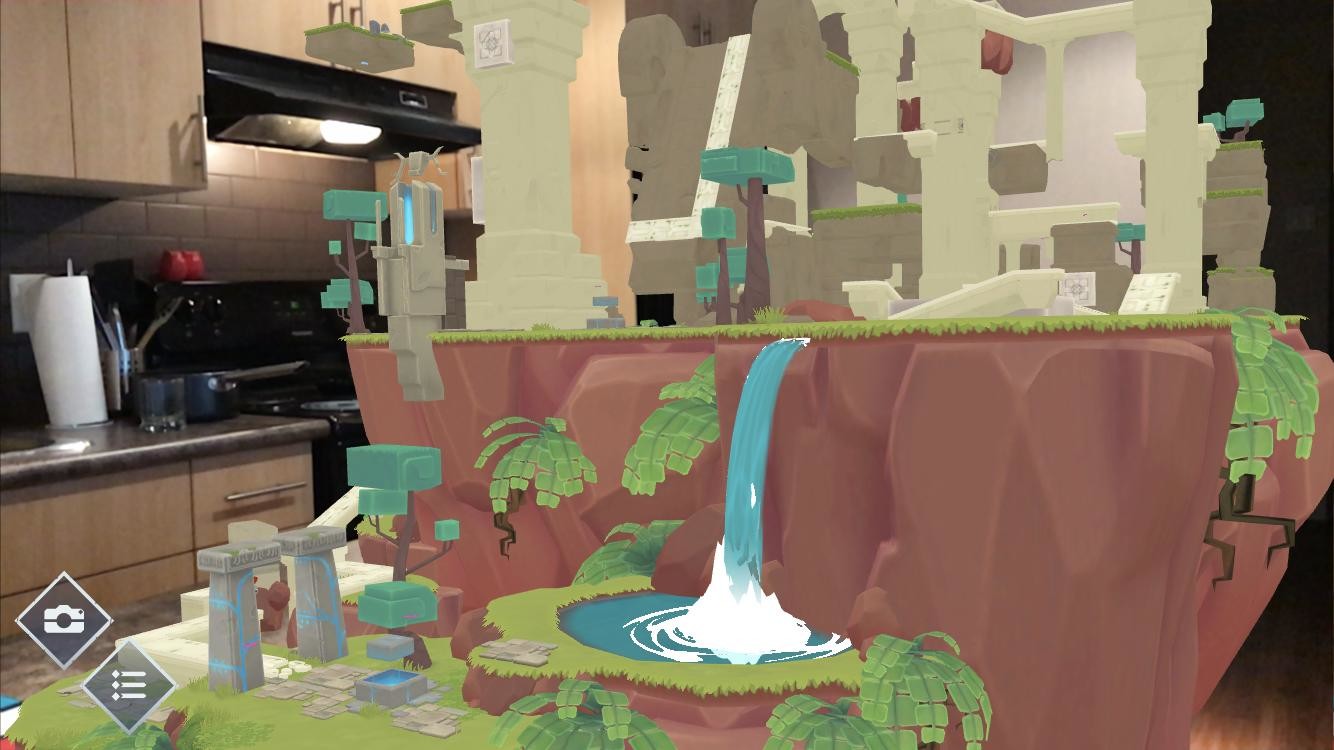 Apple’s ARKit allows for this unique play style. When you first open the app, you must aim your camera at a location to serve as a base to be walked around. Once set up, the user can play through each level with relative ease. The AR design is well done, and works almost seamlessly with the fun, cartoony graphics. Still, often a user will have to reset heights and perspectives to successfully identify the visual cues to continue their journey. Sometimes limited instructions frustrated users to the point of quitting, along with many people being initially turned away when they realized any iPhone below iPhone 6+ would not work with ARKit technology.